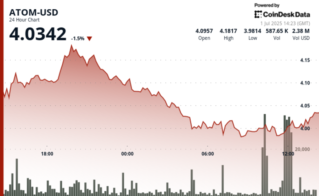 Global trade tensions and shifting monetary policies continue to influence cryptocurrency markets, with ATOM showing notable volatility in recent trading.