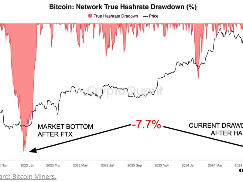 The hashrate has slumped by 7.7% since the halving as inefficient miners turn off their equipment.