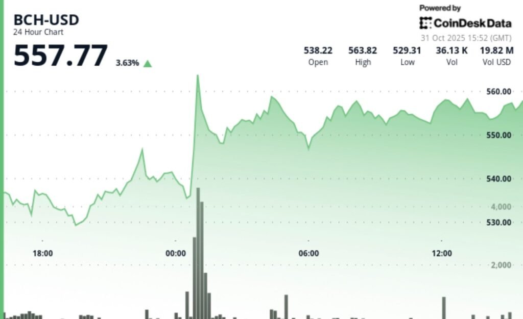 Bitcoin Cash Breaks Above $550 as Volume Surges; Range Tightens Near Support