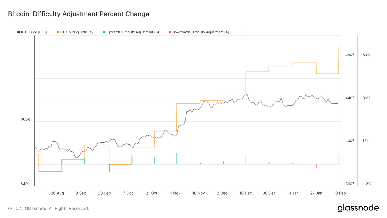 This rise in difficulty is due to bitcoin’s rising hash rate, which hit an all-time high on Feb. 4. Mining difficulty adjusts every 2,016 blocks, targeting an average block time of 10 minutes.