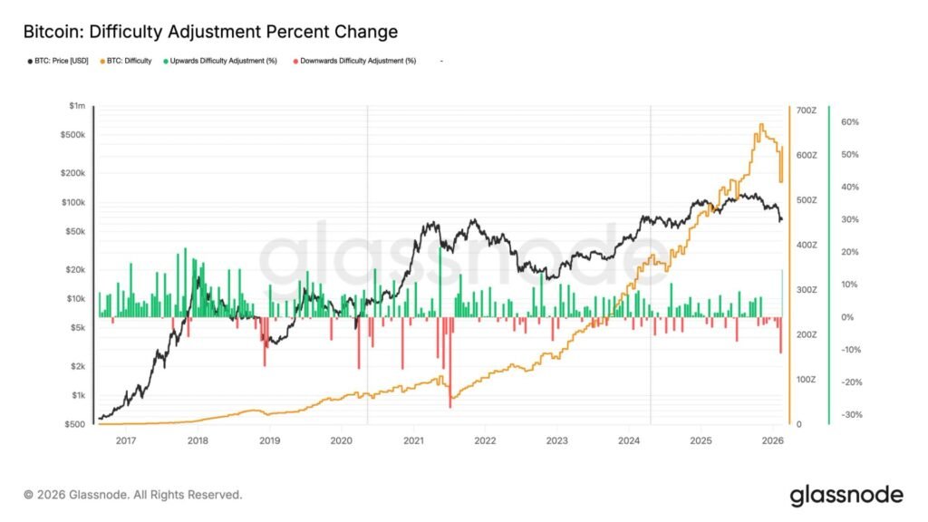 Bitcoin difficulty jumps 15% largest increase since 2021, despite price slump