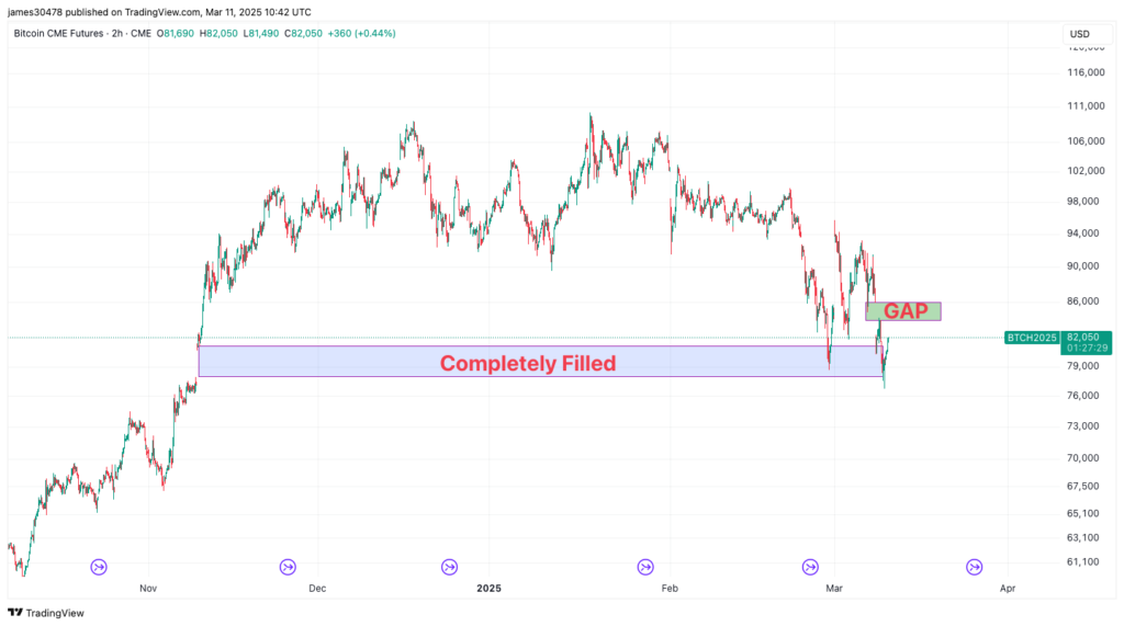 CoinDesk research noted that out of the previous 80 CME futures gaps, all but one have eventually been filled. As for remaining gaps, one still exists between $84,200 and $85,900.