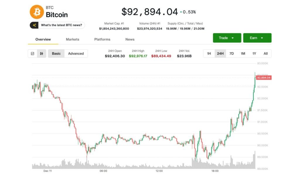 Bitcoin Rebounds to $93K From Post-Fed Lows, but Altcoins Remain Under Pressure