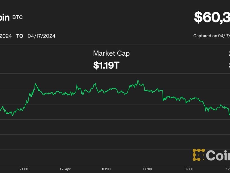 After earlier Wednesday recovering above $64,000, bitcoin slipped to as low as $59,900, down more than 3% over the past 24 hours and its weakest price since early March. At press time, it was trading at $60,200.