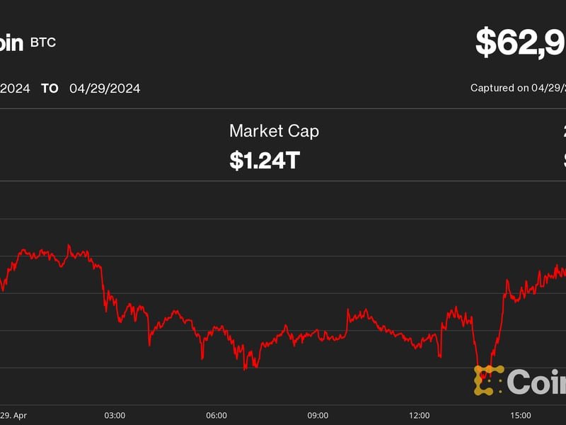 BTC drifted lower during the day from $64,000 over the weekend, slipping briefly to $61,800 before recovering to just near $63,000 at U.S. afternoon hours. The largest crypto by market value was recently changing hands at $63,000 down about 1% in the past 24 hours, holding up better than the broad-market CoinDesk Market Index (CD20), which lost 3% over the same period.