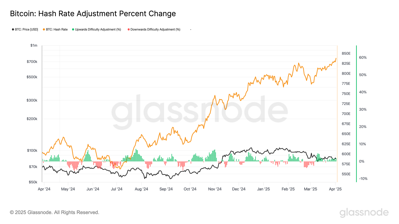 Measuring over a 24-hour window can be misleading due to block time variability, so longer timeframes give more reliable insights. In two days, Bitcoin’s difficulty adjustment — which recalibrates every 2016 blocks to maintain a 10-minute block interval — is expected to increase by over 3%, reaching a new peak.
