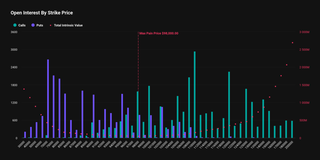 However, max pain is at $98,000, that is, $10,000 higher than the current spot price. Max pain is the price at which option sellers, typically institutions, achieve maximum profit, while buyers experience the greatest amount of losses.