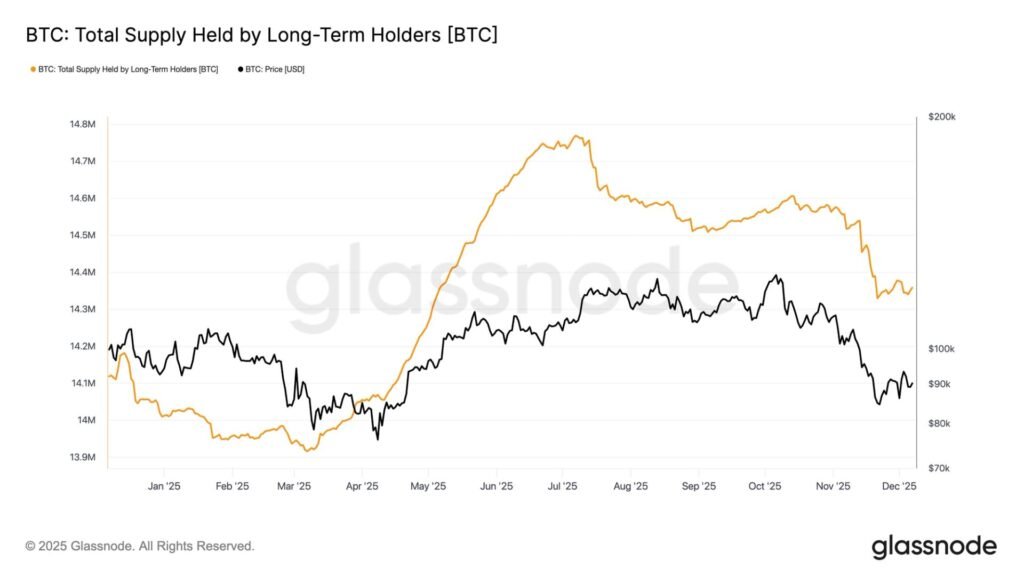 Long-term holder supply bottomed when bitcoin sank to $80K, signaling that the wave of spot-driven selling may be nearing exhaustion as prices rebound to $90K.