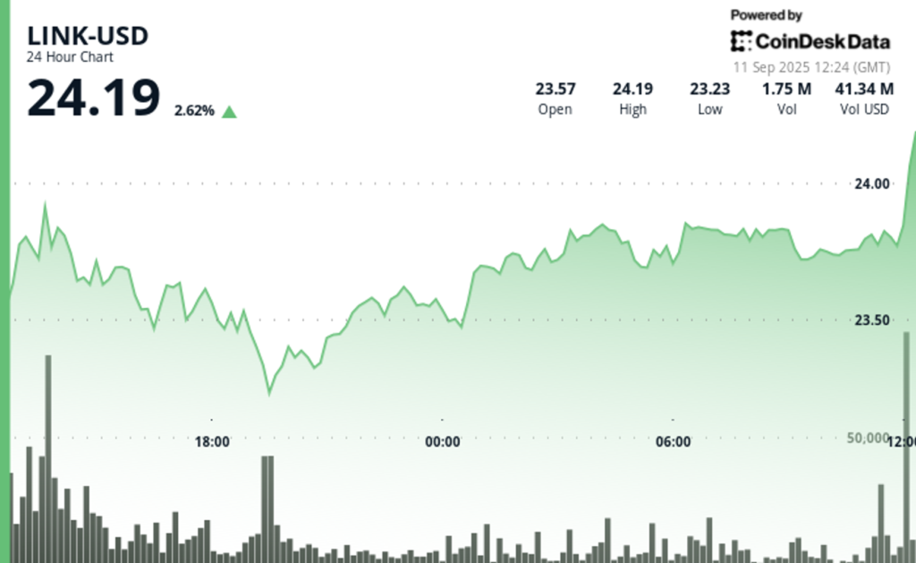 Chainlink native token LINK (LINK) crossed $24, advancing 2.5% on Thursday as the oracle provider revealed a joint project with DigiFT and UBS to automate tokenized fund operations in Hong Kong.