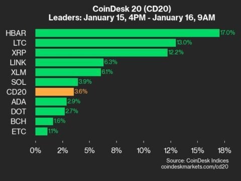 CoinDesk 20 Performance Update: Aptos (APT) Gains 10% as All Index Constituents Rise