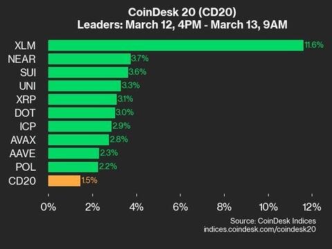 Bitcoin (BTC) and Stellar (XLM) both declined 0.1% from Wednesday.