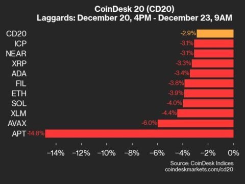 CoinDesk 20 Performance Update: Hedera (HBAR) Falls 3.9% as Index Declines