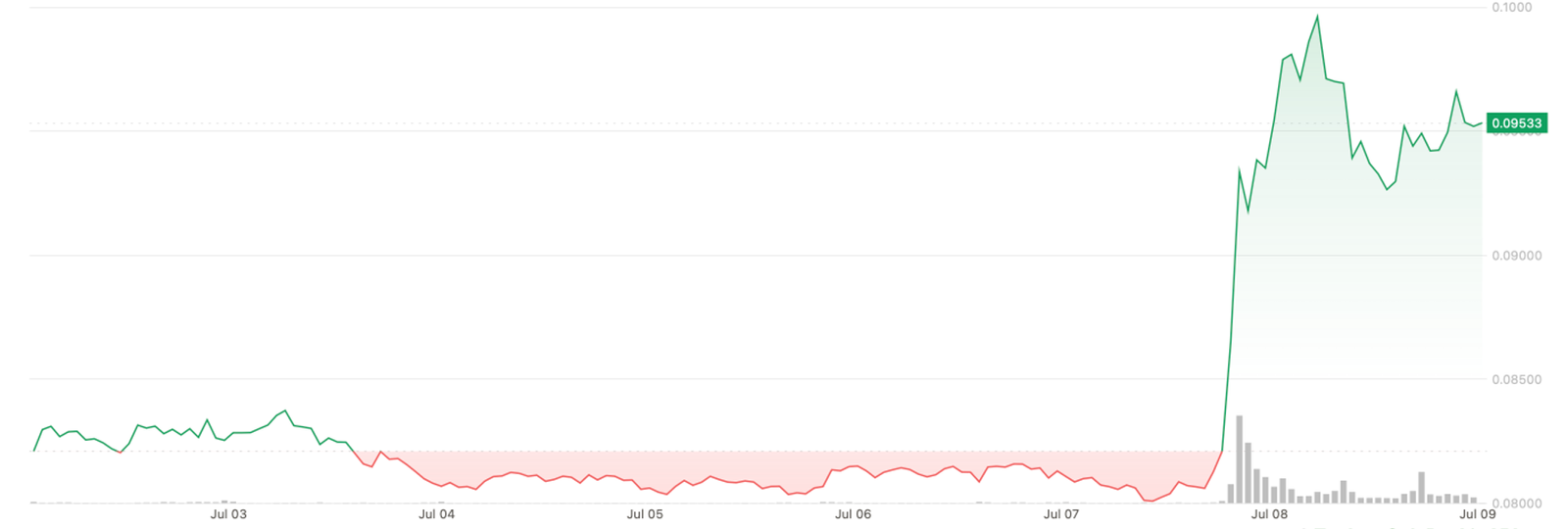 Cronos (CRO), the native token of the Crypto.com blockchain, surged nearly 18% to $0.095 Wednesday following news that it could be included in a new exchange-traded fund (ETF) backed by Trump Media & Technology Group.