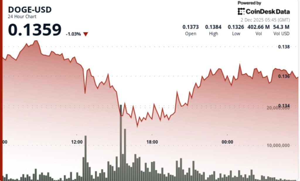 Dogecoin’s recovery remains fragile, with resistance between $0.1362 and $0.1386 needing to be overcome for a bullish shift.