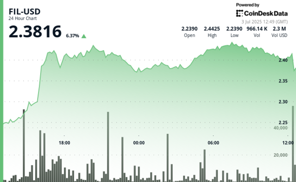 In recent trading, FIL was 6.4% higher over 24 hours, trading around $2.395.
