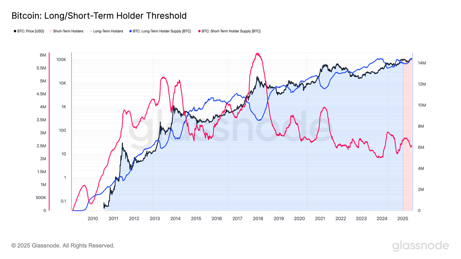 Long-term holder (LTH) bitcoin supply, as tracked by Glassnode, has surged to a record 14.46 million BTC, signaling confidence that price gains are in store.