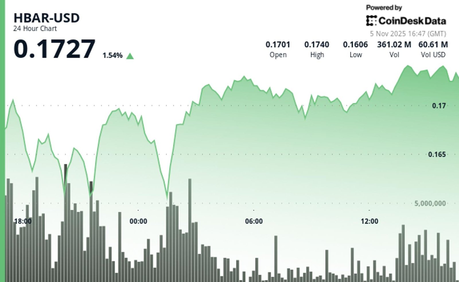 HBAR Eyes $0.18 as Volume Surge Signals Possible Breakout