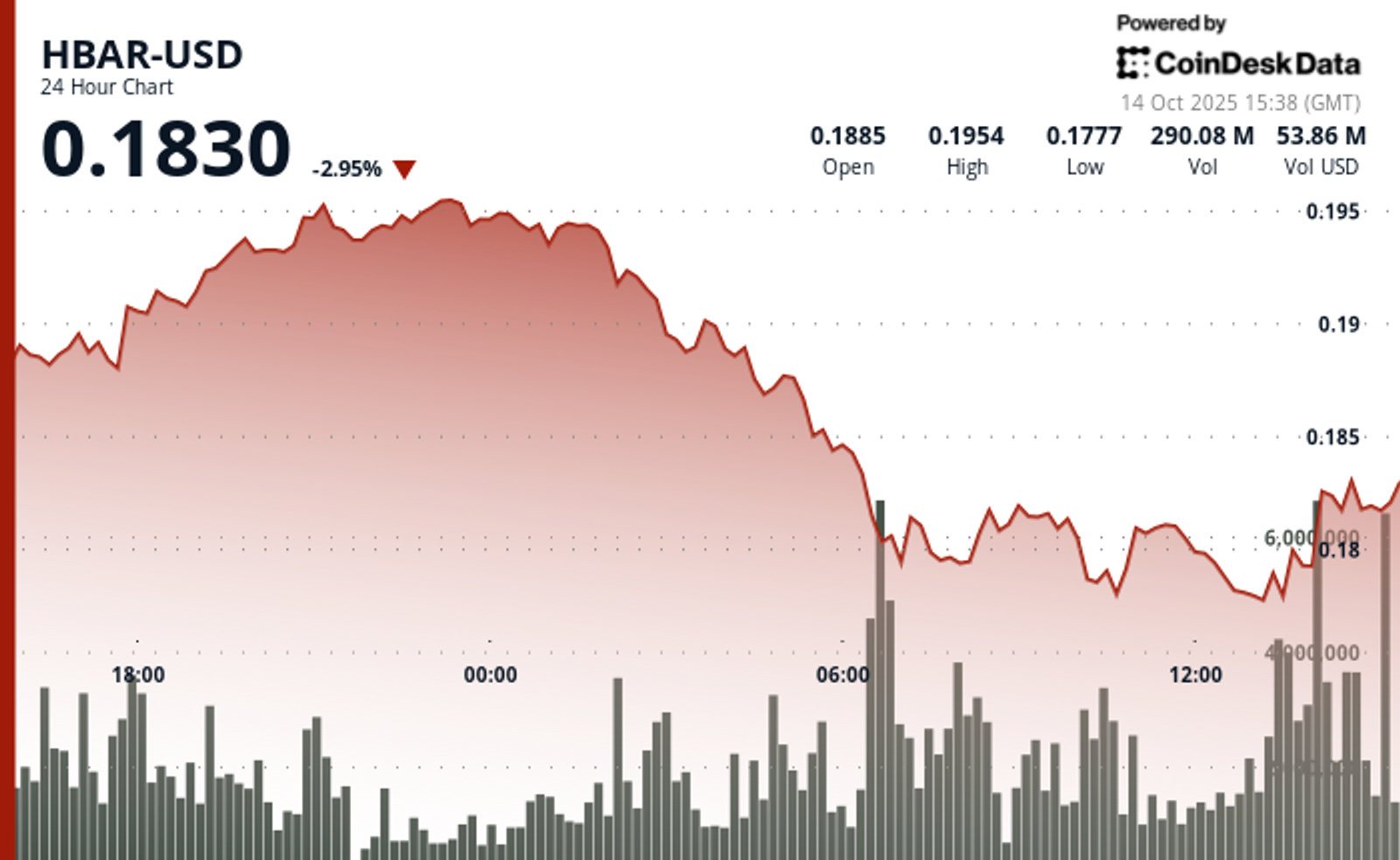 HBAR Plunges 8% After Failed Rally to $0.20 Resistance