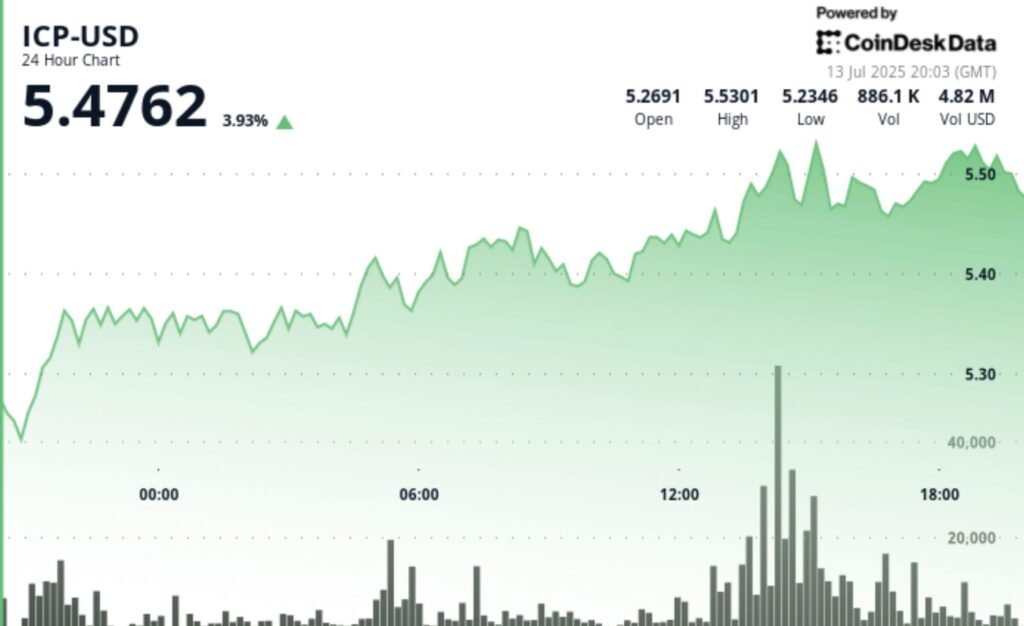 At the time of writing, ICP is trading at around $5.48, up 4% in the past 24-hour period, according to CoinDesk Research’s technical analysis model.