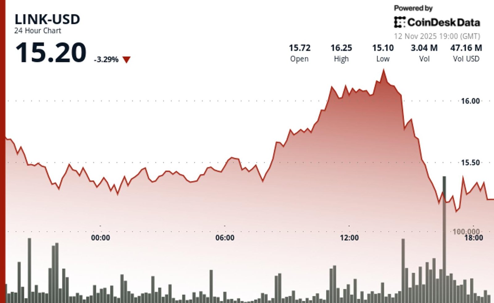 The oracle token encountered selling pressure at $16.25 alongside a sizable decline in the broader crypto market.