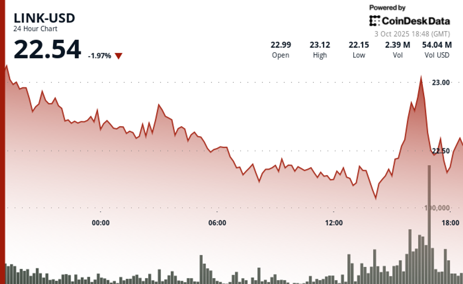 Technical indicators signal bullish momentum is returning for LINK, establishing a clear higher low but facing resistance at the $23 level, CoinDesk Data’s research model suggested.