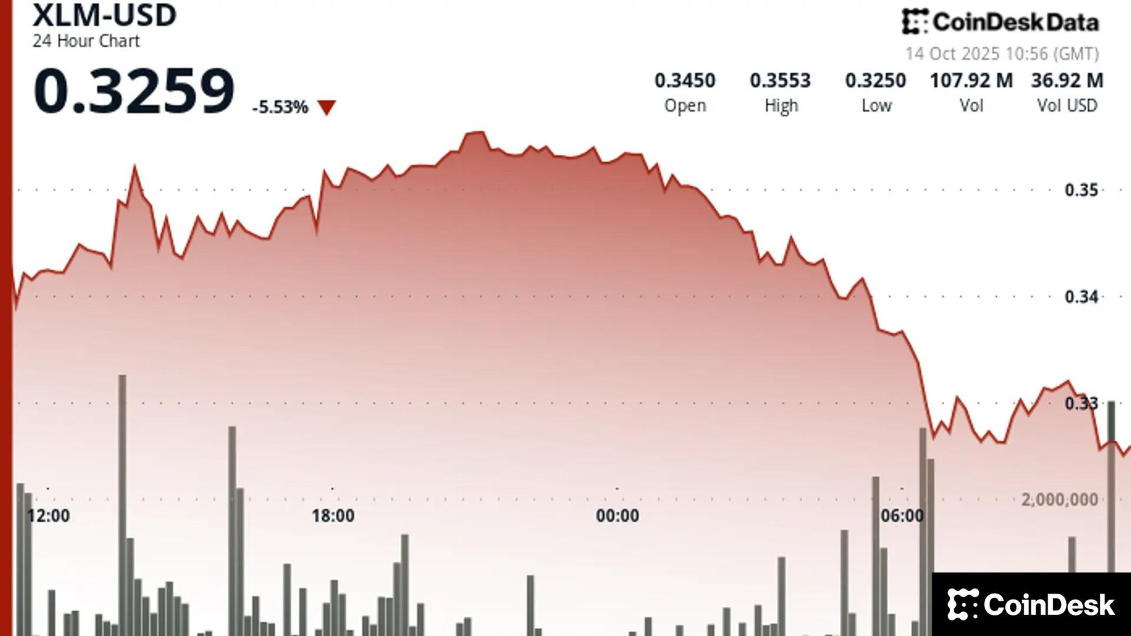 As of press time, according to CoinDesk Data, XLM traded around $0.3251, down 6.4% over the past 24 hours.