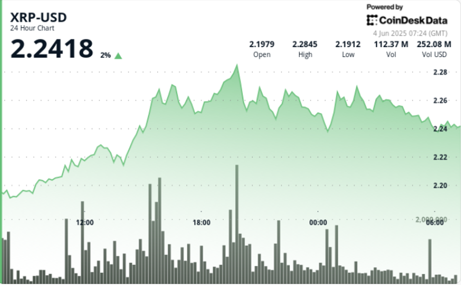 XRP was little changed over the past 24 hours, rising from $2.194 to $2.264 and defying the broader digital asset market’s uncertainty. The token’s rally comes amid intensifying global trade tensions, with major economies implementing new tariffs that have rattled markets.